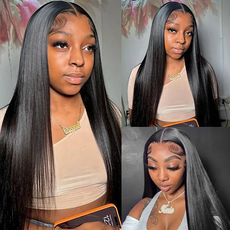 Peruca Lisa yaki – Cabelo Humano, Frente de Renda 13x4 HD, Sem Cola, Wear & Go, Pré-Cortada e Pré-Desbastada, Pronta a Usar